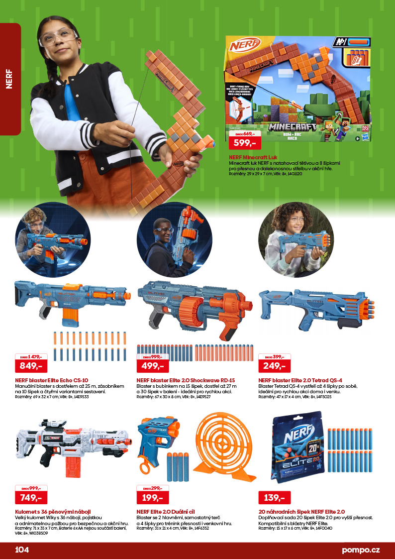 Hasbro Nerf Minecraft luk Hasbro Nerf Echo CS-10 Hasbro NERF Shockwawe RD-15 Habro Nerf Elite 2.0 Tetrad Wiky Kulomet s 36 pěnovými náboji 67 cm Hasbro Nerf Elite 2.0 Duální cíl Hasbro Nerf Elite 2.0 20 Náhradních šipek