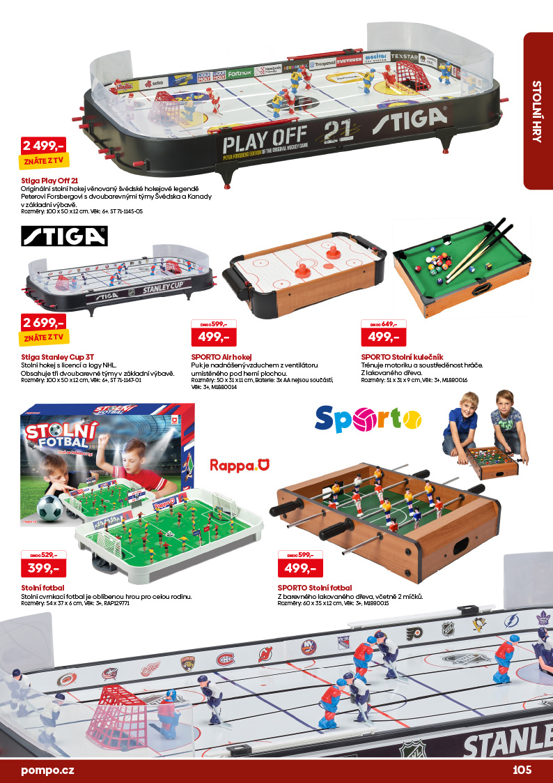 Stiga Play Off 21 Stiga Stanley Cup 3T SPORTO Air hokej SPORTO Stolní kulečník Rappa Hra fotbal/kopaná SPORTO Stolní fotbal